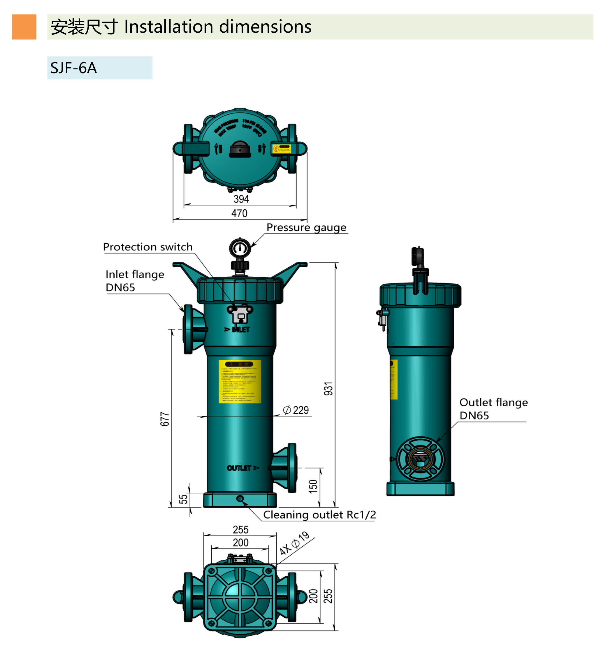 ●.进出水口采用法兰式连接,坚固耐用,可配各国标准管道法兰使用。