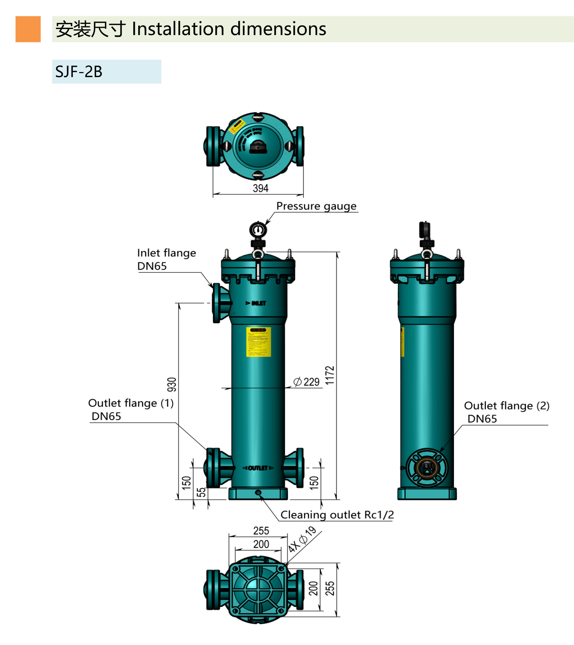 ●.进出水口采用法兰式连接,坚固耐用,可配各国标准管道法兰使用。